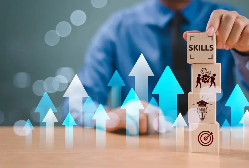 Skills development with upward arrows and blocks.